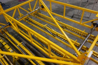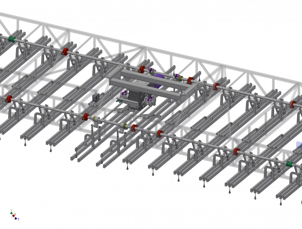 Progettazione meccanica ex novo del sistema di distaccamento delle reti elettrosaldate dai magneti permanenti, riprogettazione del restante carroponte sulla base di uno esistente.