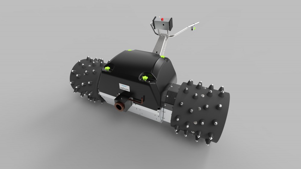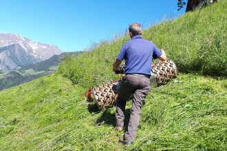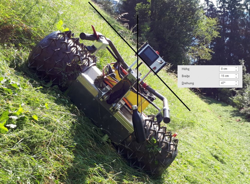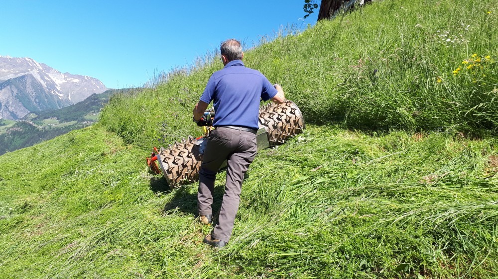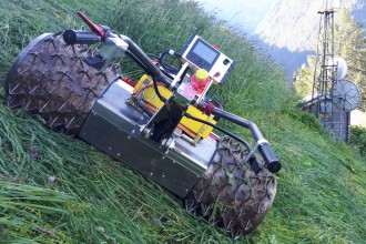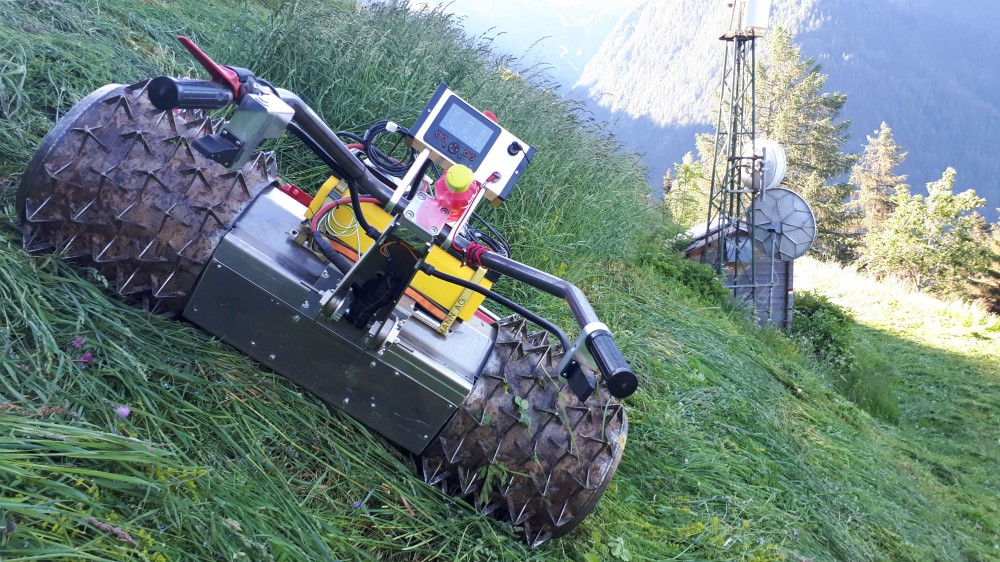 Motofalciatrice elettrica per terreni ripidi in montagna.