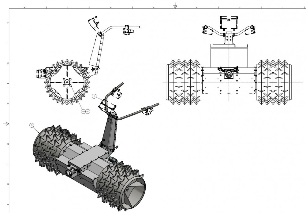 Progettazione meccanica della macchina integrando in modo compatto le motorizzazioni e l‘impianto elettrico.