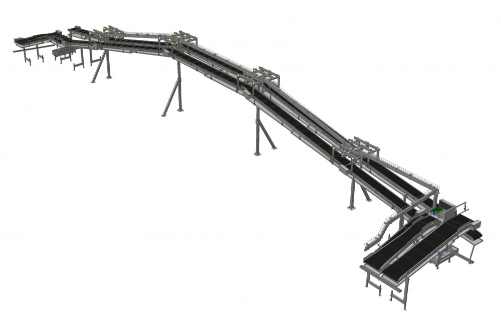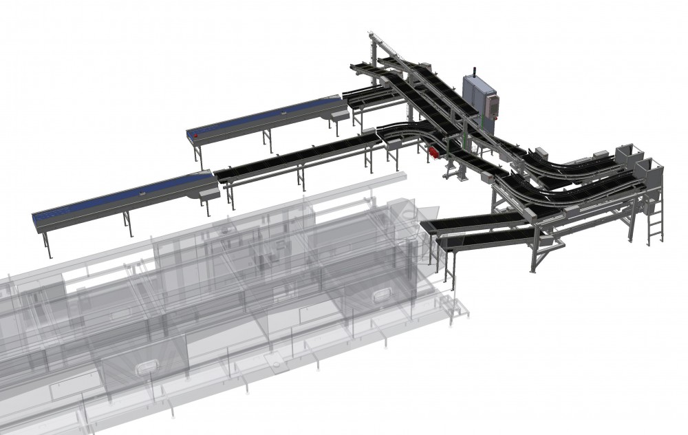 Disegno di sistemi per il trasporto di casse secondo specifiche esigenze di Layout riutilizzando e adattando soluzioni tecniche esistenti.